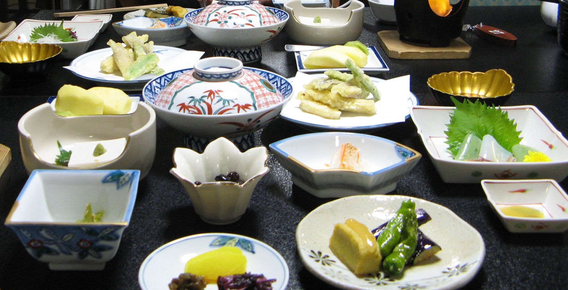 Het diner wordt meestal om 18.00 uur geserveerd en is traditioneel geheel vegetarisch. Wanneer je de felverlichte eetzaal binnentreedt staan voor alle gasten de tafels voorgedekt met prachtige gerechten. Per persoon kun je wel 15 schaaltjes aantreffen, de een nog mooier opgemaakt dan de andere. In de maaltijden worden niet alleen geen dierlijke producten gebruikt, maar ook geen ui en knoflook. De smaken zijn zoet, zout, zuur, bitter, umami, flauw, scherp soms bijna overrompelend lekker.