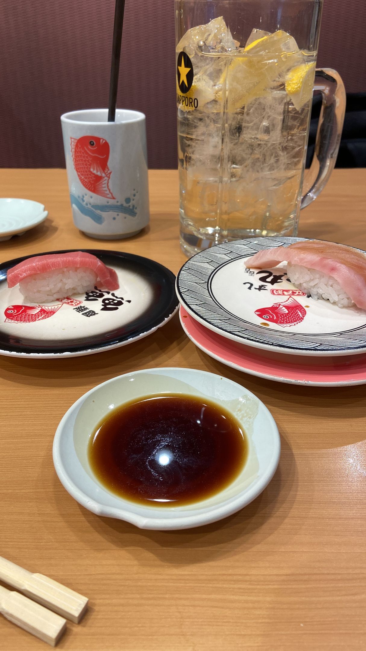Zoiets moedigt aan tot ondeugendheid. Dus zit je op vrijdagmiddag om 4 uur uitgebreid aan de sushi met een enorme haibaru (heel veel ijs, sodawater en citroen en een heel klein beetje whisky).