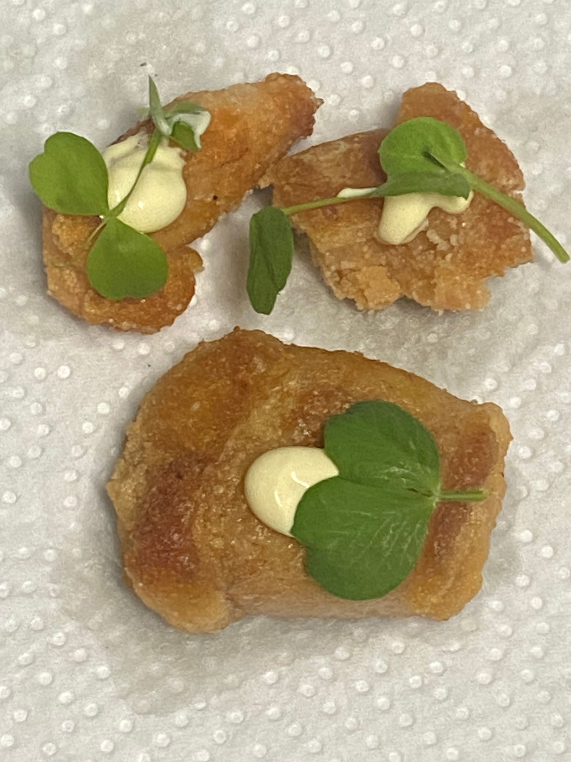 Dit koop je hier in moten met de kuit erin. Het moeten enorme vissen zijn. Nog nooit eerder zoiets bereid. En die kuit... wat doe je ermee. Uiteindelijk werd het heerlijk. De kuit uit de moten vis gedrukt, met een beetje bloem bestrooid en kort gebakken blijkt het een heerlijke ‘borrelhap’ te zijn. Als je dat in Nederland kunt kopen, zou dat zomaar een van mijn nieuwe hapjes kunnen worden met een glas sake erbij. En die schol was ook erg lekker. Wat kort gebakken spinazie met sesam en je hebt een fijne maaltijd. Alleen dit soort vis bakken (of misschien wel elke vis) in dit kleine huisje is niet iets waar je blij van wordt. Hoewel ik alles tegenover elkaar had opengezet, was de meur niet weg te krijgen en had ik het wel ontzettend koud. Volgens mij stink ik morgen zelf ook nog. Hoe heerlijk het ook was, dat is iets dat je één keer doet. Gewoon uit nieuwsgierigheid.