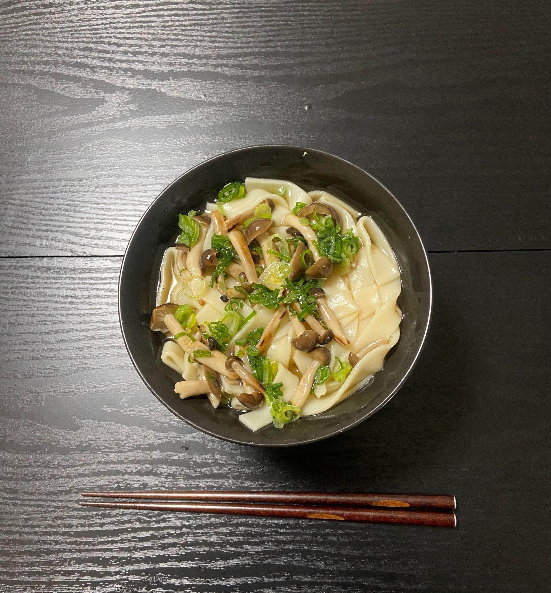 Zondagmiddag in de supermarkt had ik omgerekend nog ongeveer €4. Ik kocht broccoli en kishimen. Kishimen zijn platte, zachte noedels waar Nagoya bekend om staat. Ze zijn gemaakt van niet meer dan water, bloem en zout, maar net als bij elke noedel of pasta zijn het vakmanschap waarmee de noedels worden gemaakt, de soort tarwebloem die wordt gebruikt, het geduld waarmee het wordt gemaakt en de manier waarop het gerecht wordt opgediend, de dingen die het maken wat het is. Kishimen worden geserveerd in een geurige dashi/bouillon met allerhande topping. De mijne zou een hele simpele versie worden.