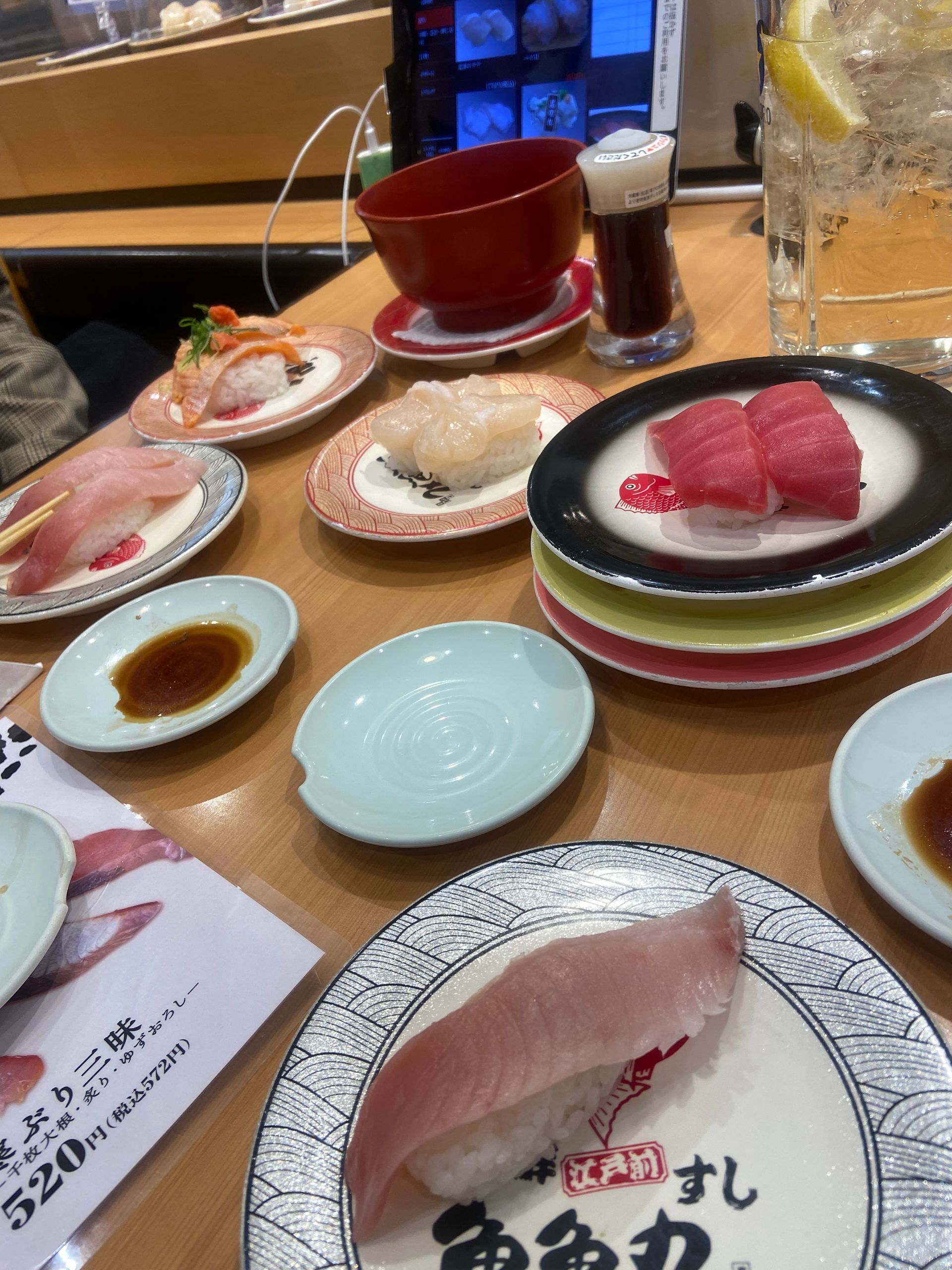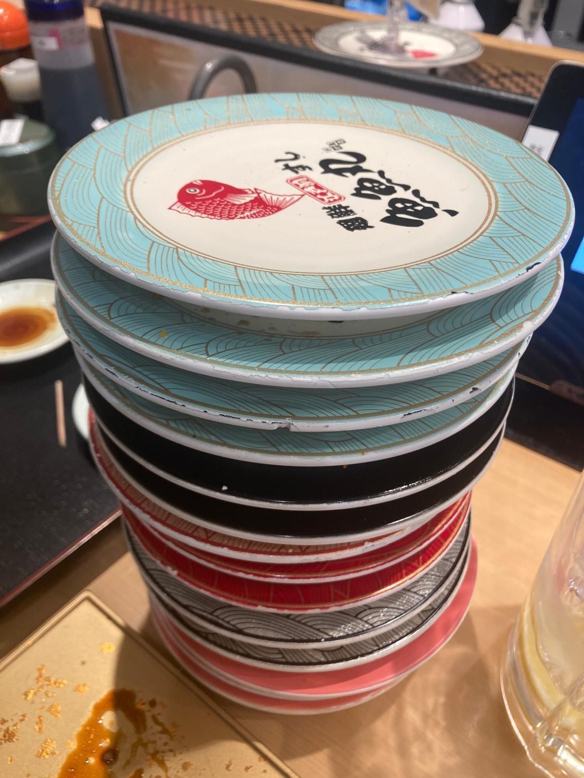 Zondag is natuurlijk sushilunch dag en met zijn tweeën wordt dat best een aardige stapel bordjes sushi die je verorbert. Als dessert hadden we de uit Nagoya meegebrachte dekopon.