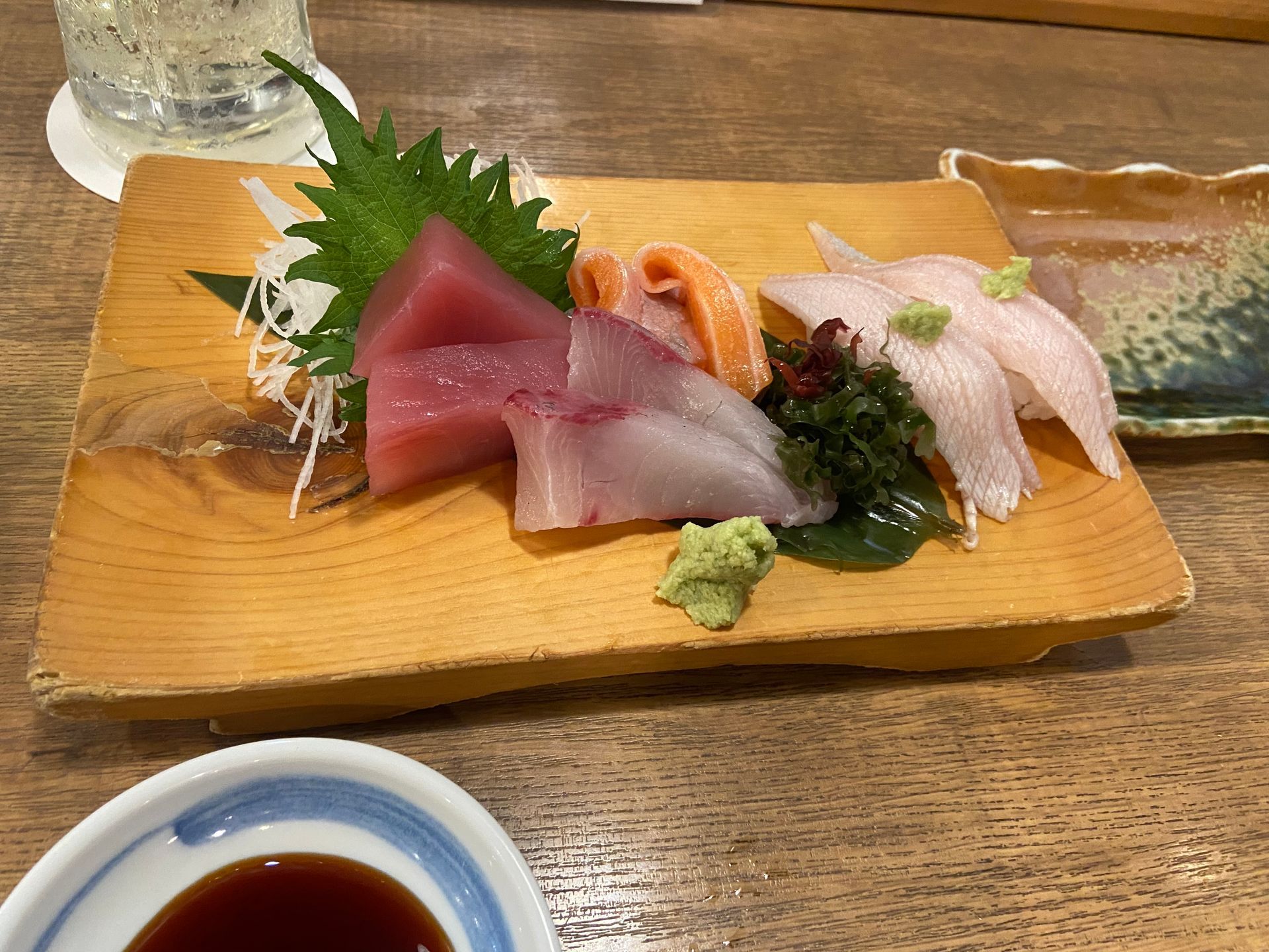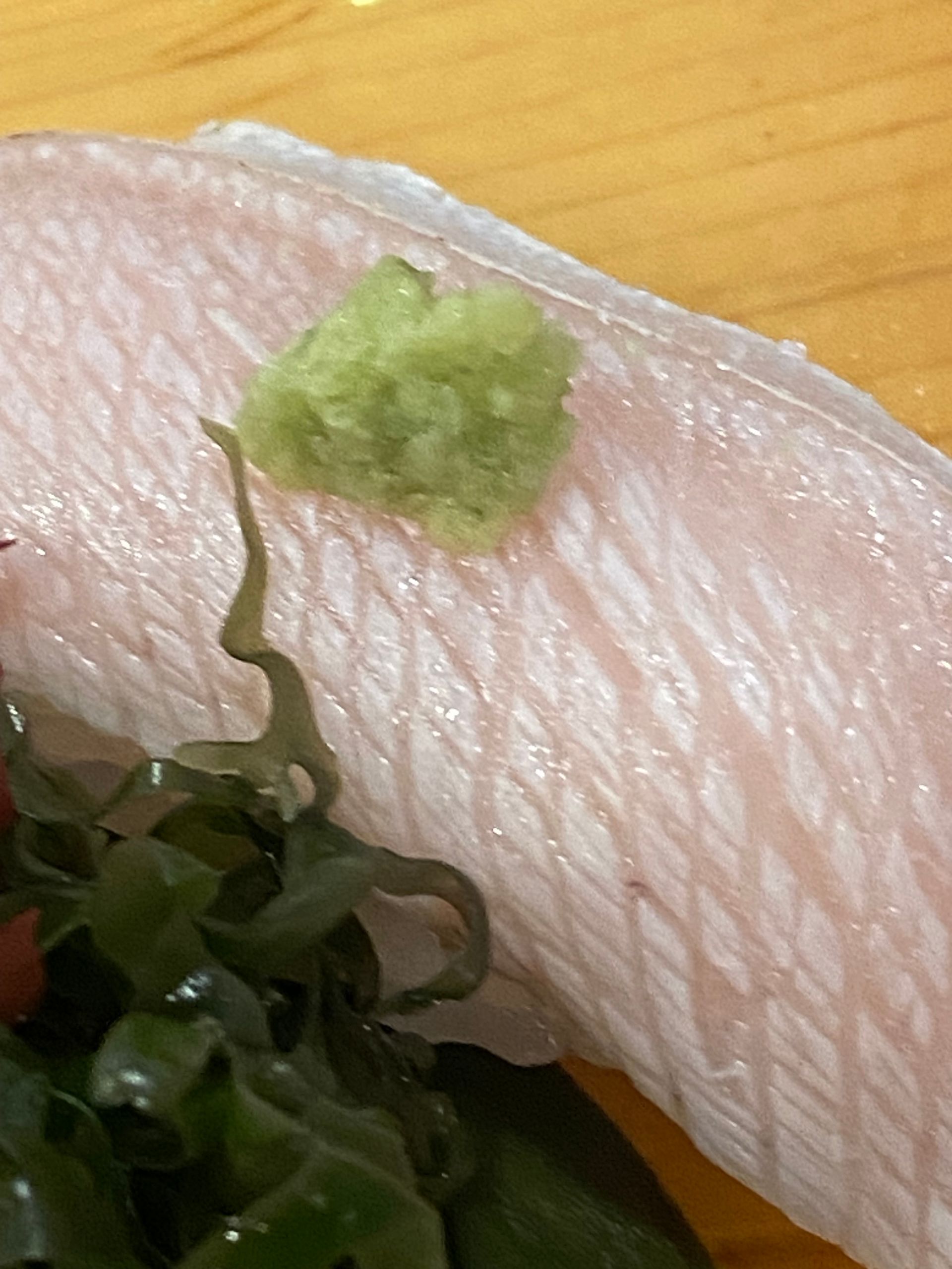 ’s Avonds was ons laatste etentje bij Daishosuisan. Dit keer kregen we als ‘service’ (gratis) bij onze sashimi een onigiri sushi met buri (yellowtail/hamachi), prachtig ingesneden en licht gezouten, waardoor hij boterzacht was.