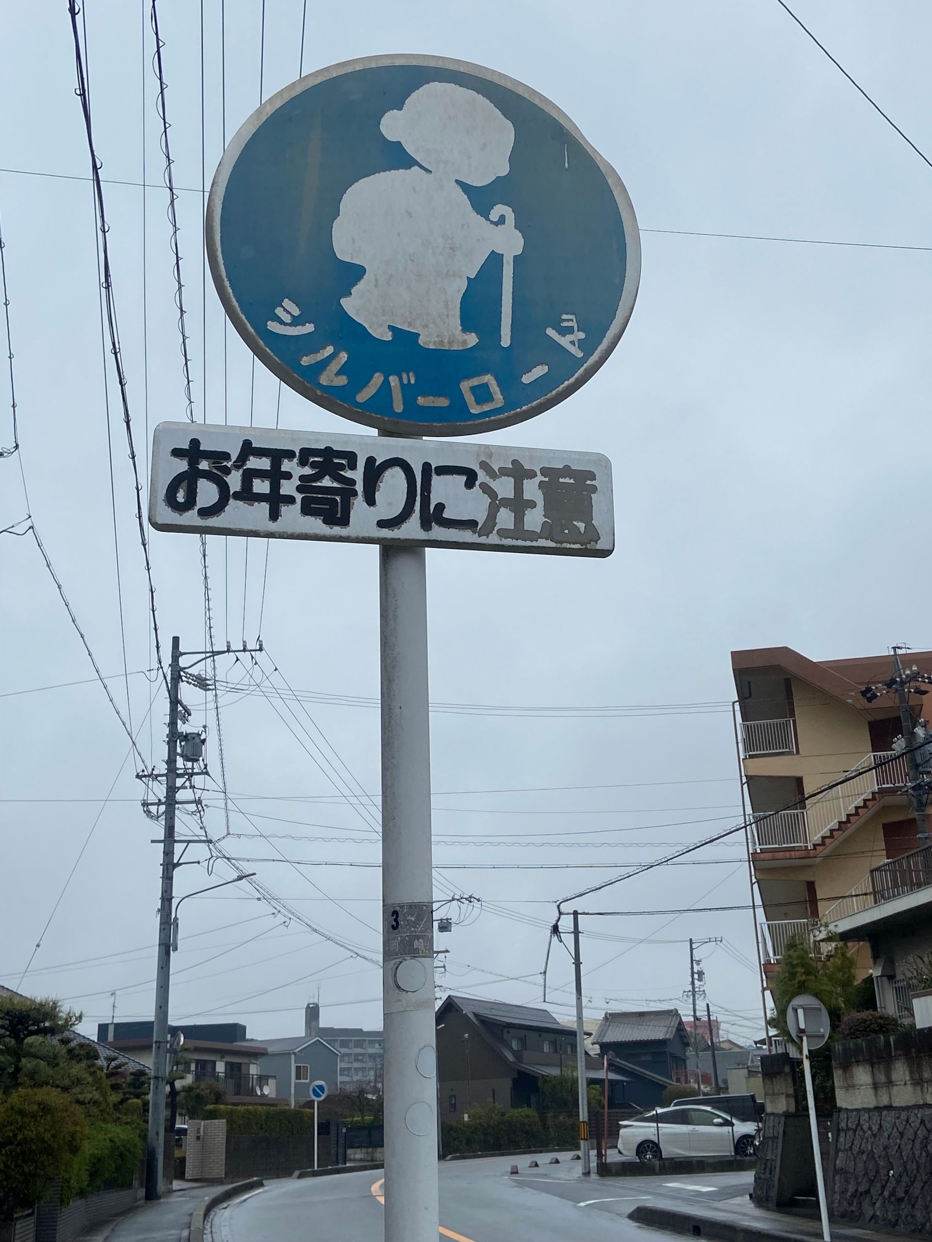 Okazaki kan er ook heel erg triest uitzien. Het verkeersbord 'shirubaroodo otoshiyorinichui' waarschuwt verkeersdeelnemers dat er langs de weg senioren wandelen en dat je extra moet oppassen. Soms staat er bij zo een bord ook nog een tijdsbestek aangegeven.
